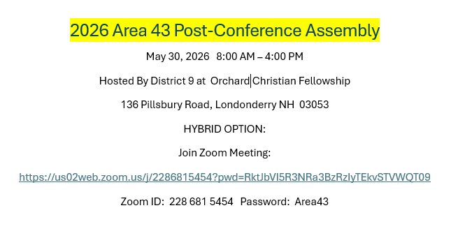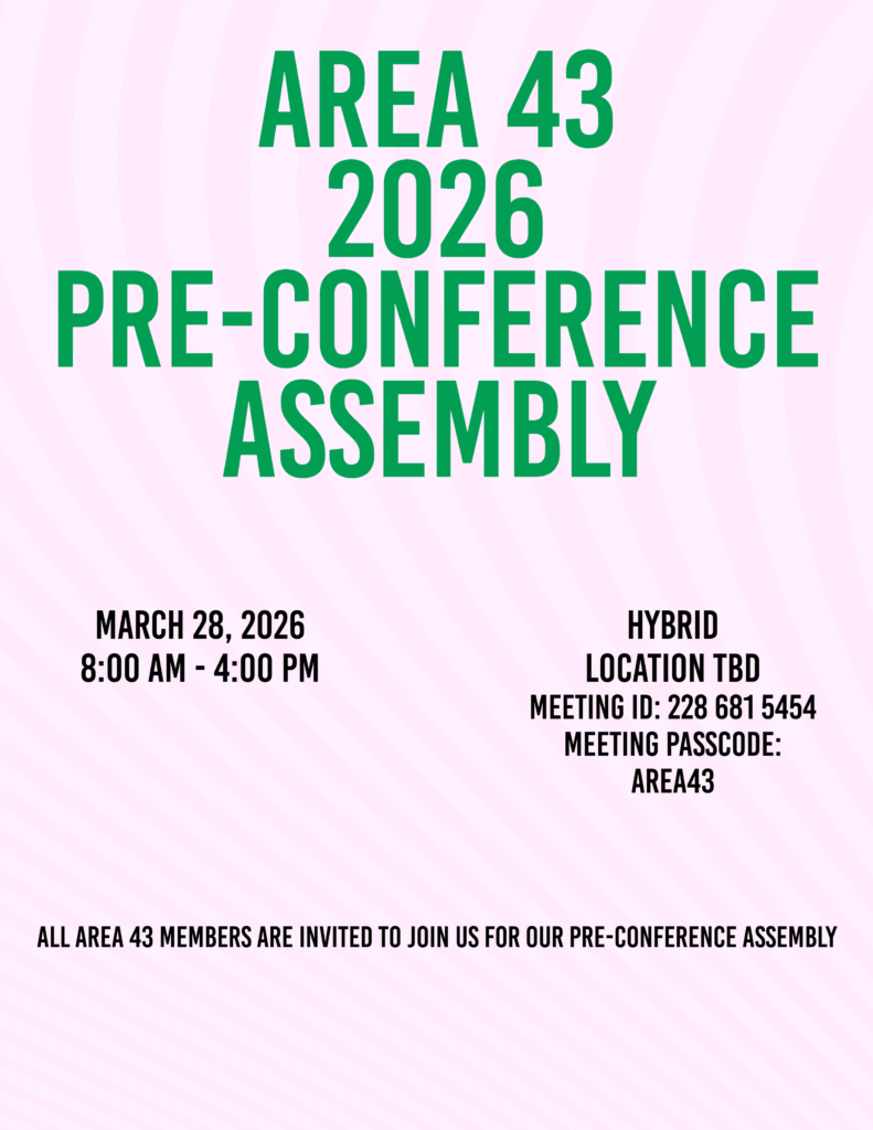 All members are welcome. We look forward to getting together with GSRs from all District 9 meetings.